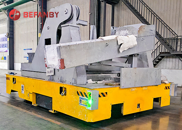 El carrito de transferencia sin pista cuenta con una función de inclinación automática, por lo que es particularmente adecuado para el transporte de materiales pesados y de alta temperatura, como acero fundido y cucharas.Su diseño garantiza la seguridad y la eficiencia durante la manipulación de materiales.